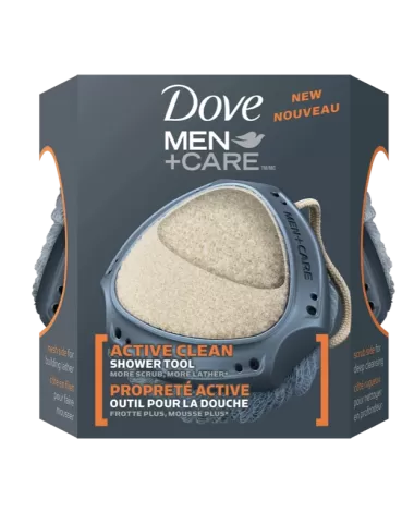 Dove® Men CareTM Active Clean Dual-Sided Shower Tool works with body wash for extra scrubbing power you can’t get from just using your hands. The mesh side delivers the perfect amount of thick cleansing lather, and the scrub side helps exfoliate for a deeper clean. Easy to grip and easy to hang. For best results, replace every 4-6 weeks.